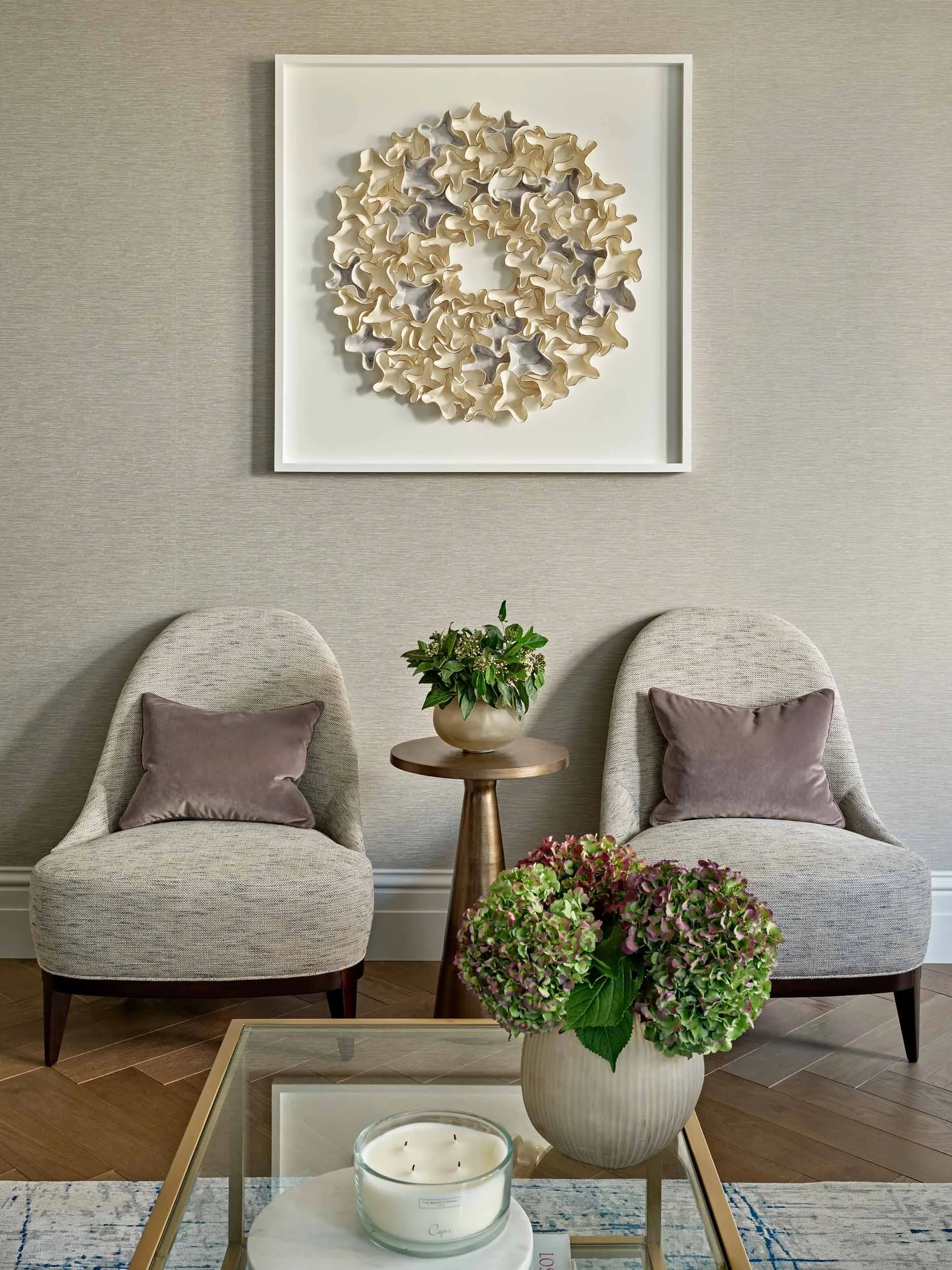 Discreet luxurious touches, beautiful hand-blown lighting, tailor-made carpentry and hand-made wallpapers are all paired with individually selected marbles and bronze detailing.